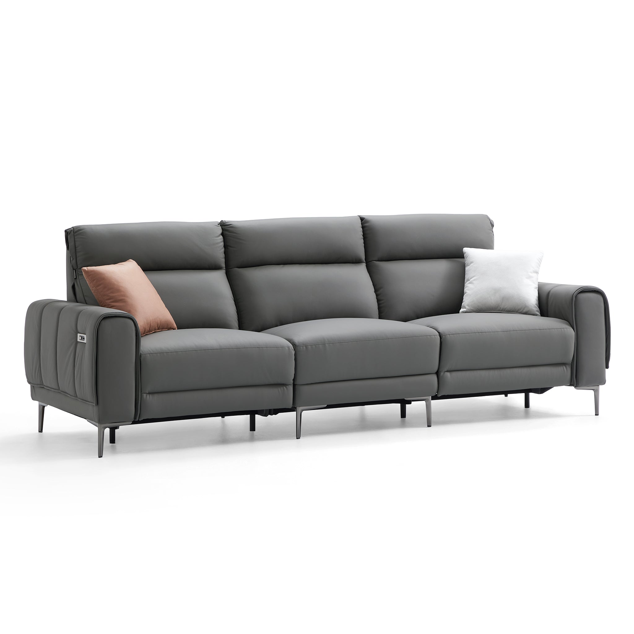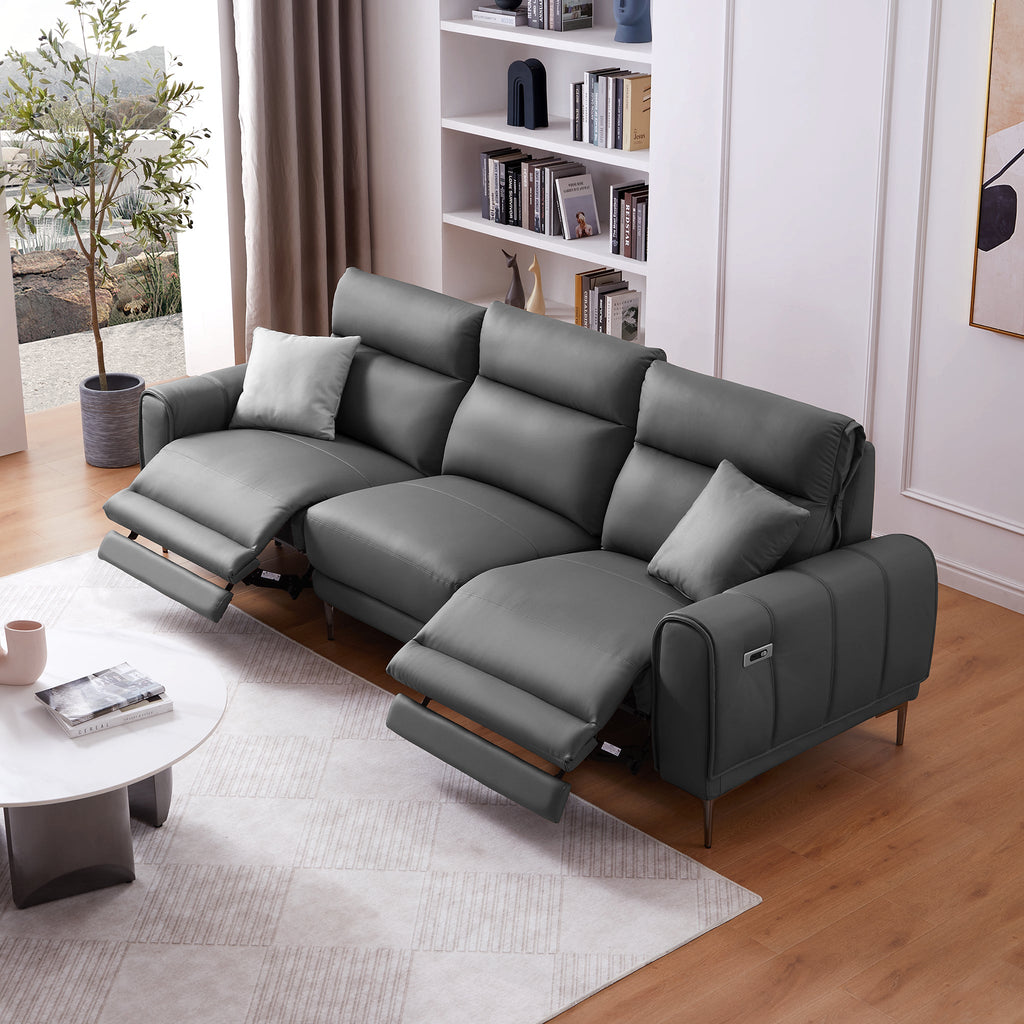 Plongez dans le luxe avec le canapé inclinable double Louis de 102,4 pieds, de style contemporain et moderne. Conçu pour allier style et confort, ce canapé est l'incarnation même de la détente. Fabriqué en cuir véritable pleine fleur, résistant et facile d'entretien, il est disponible en trois superbes coloris : orange, gris ou beige. Le panneau de commande intégré avec port de charge USB apporte une touche de modernité à ce meuble classique. Facile à assembler et sans outils, l'installation de votre nouveau canapé est un jeu d'enfant.